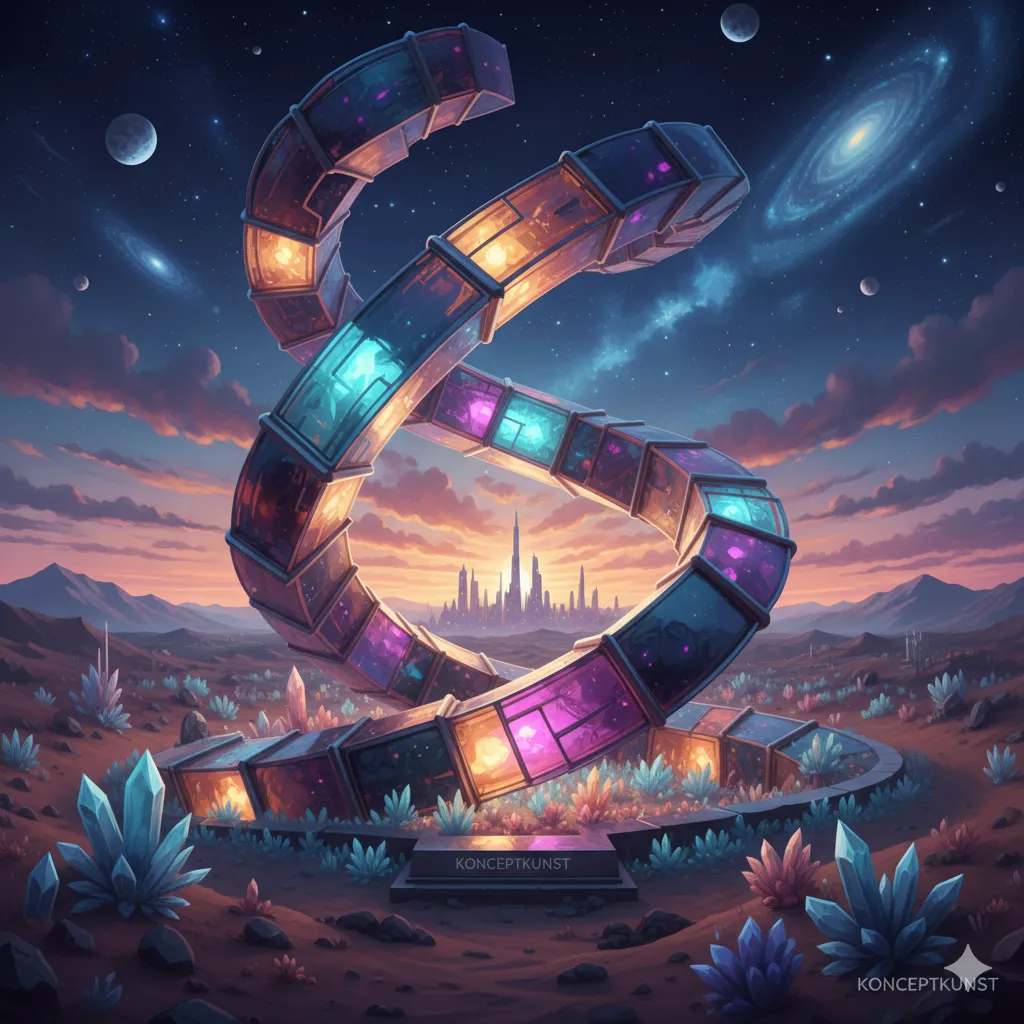 Konceptkunst af en futuristisk by til et filmprojekt. Detaljeret miljødesign med atmosfærisk belysning.